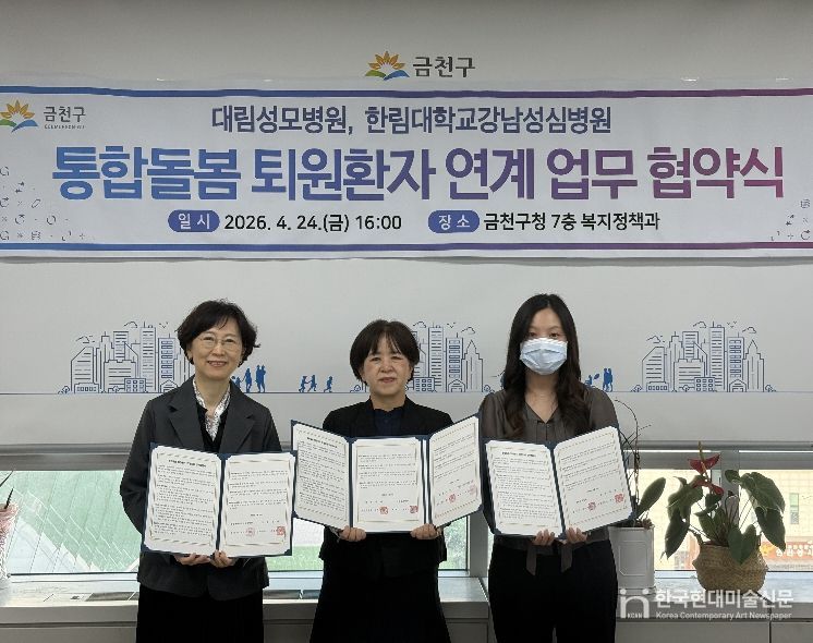 한국현대미술신문 배건 기자 | 금천구는 지난 24일 대림성모병원, 한림대학교강남성심병원 등 2개소와 통합돌봄 퇴원환자 지역사회 연계를 위한 업무협약을 체결했다고 밝혔다.