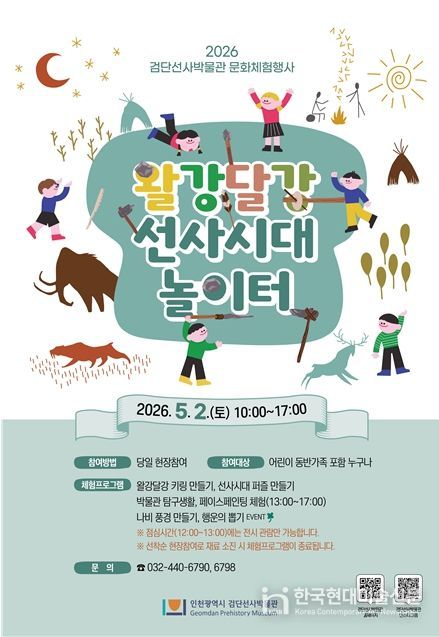 한국현대미술신문 박재남 기자 | 인천광역시 검단선사박물관은 오는 5월 2일, 가정의 달을 맞아 어린이 문화체험행사 ‘왈강달강 선사시대 놀이터’를 개최한다고 밝혔다.