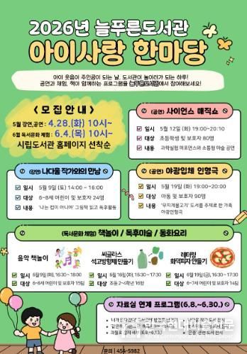 도서관 관계자는 “어린이들이 도서관을 즐거운 놀이터이자 쉼터로 느낄 수 있도록 준비했다”며, “가족이 함께 참여해 책을 매개로 행복한 시간을 보내길 바란다”고 말했다.