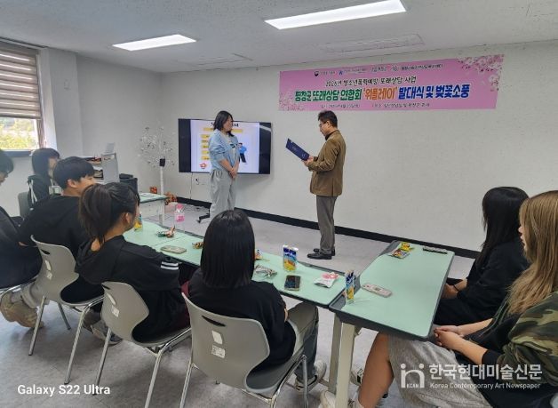 한국현대미술신문 원진 기자 | 평창군청소년상담복지센터는 지난 25일 '청소년폭력 예방 또래 상담'의 시작을 알리는 평창군 또래 상담 연합회 ‘위플레이’ 발대식을 개최하고, 이후 벚꽃 소풍 프로그램을 진행했다.