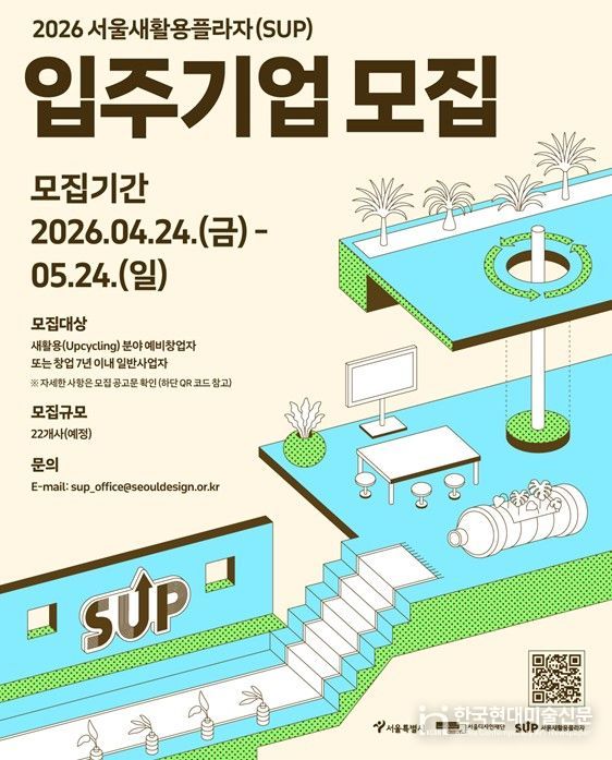 서울디자인재단은 자원순환도시, 탄소중립도시 서울을 함께 만들어갈 ‘2026년 서울새활용플라자 입주기업 모집’을 5월 24일까지 진행한다.