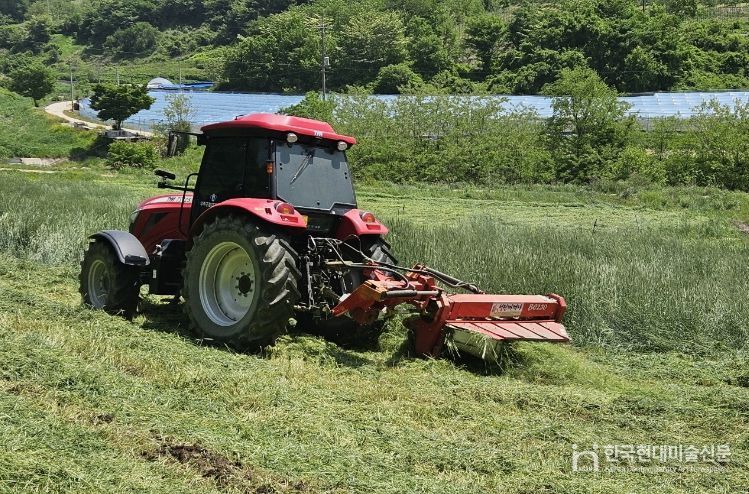 한국현대미술신문 기자 | 무주군이 농번기를 맞아 '농작업 대행 서비스' 제공에 주력하고 있다. 무주군에 따르면 트랙터, 자주형 베일러 등 12종 48대를 활용해 하우스 정지 등 농업 현장의 필수 작업을 대행하고 있다.
