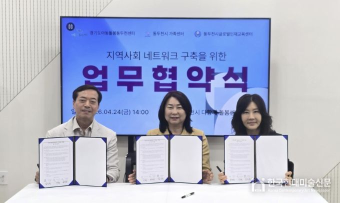 한국현대미술신문 배윤섭 기자 | 동두천시글로벌인재교육센터는 지난 24일 동두천시가족센터, 동두천시다함께돌봄센터1호점(경기도아동돌봄동두천센터)과 함께 지역사회 네트워크 구축을 위한 3자 간 업무협약(MOU)을 체결했다고 밝혔다.