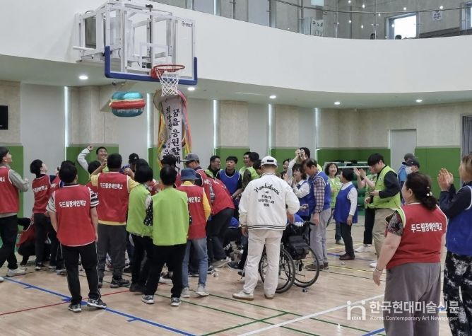 한국현대미술신문 배윤섭 기자 | 동두천시 학교 형태의 장애인 평생교육시설인 두드림장애인학교가 지난 24일 동두천반다비체육센터에서 ‘명랑운동회’를 개최했다.