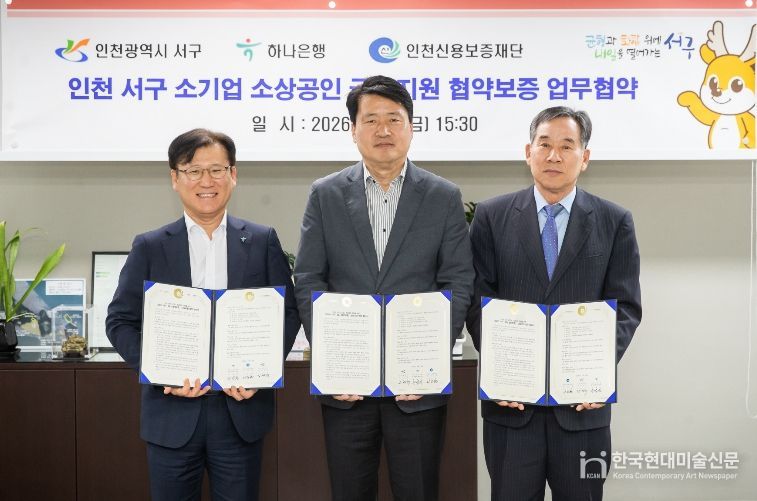 한국현대미술신문 박재남 기자 | 인천 서구는 지난 24일 하나은행, 인천신용보증재단과 함께 15억원 규모의 '서구·하나은행 특별지원 협약보증' 및 '인천서구 특례보증업무협약'을 체결했다고 밝혔다.