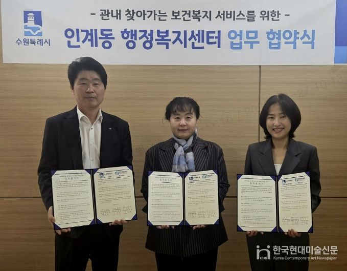 한국현대미술신문 배윤섭 기자 | 수원시 팔달구 인계동은 지난 24일, 지역사회보장협의체과 한전MCS(주) 경기지사 및 직할지점과 함께 취약계층 발굴과 지속적인 인적안전망 활동 참여를 위한 업무 협약을 체결했다.