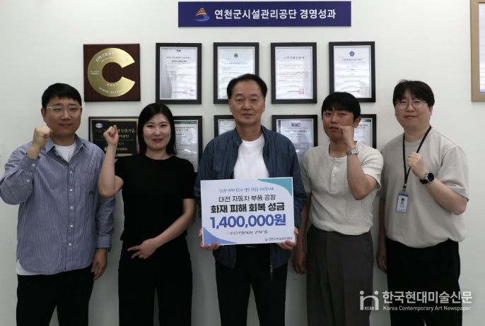 한국현대미술신문 배윤섭 기자 | 연천군시설관리공단은 지난 23일 대전 자동차 부품 공장 화재로 피해를 입은 근로자 및 이재민 지원을 위한 성금 1,400,000원을 대한적십자사에 전달했다고 밝혔다.