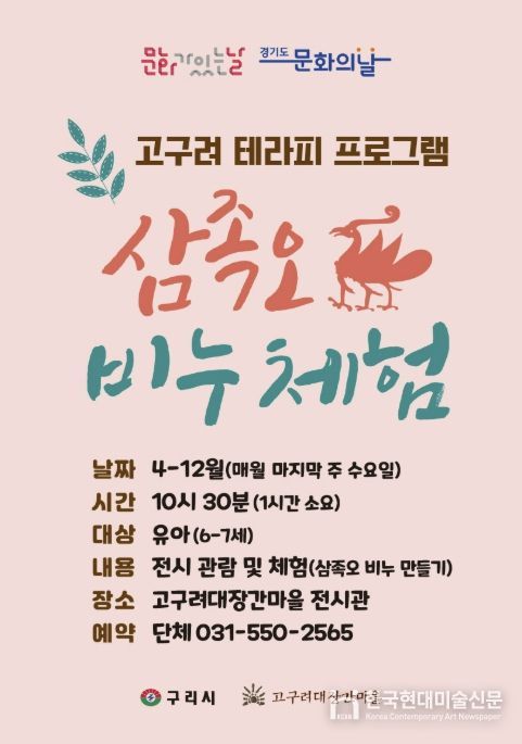 한국현대미술신문 배윤섭 기자 | 구리시는 4월부터 고구려대장간마을에서 매월 마지막 주 수요일 ‘문화가 있는 날’을 맞아 ‘삼족오 비누 체험! 고구려 치료 프로그램’을 운영한다고 밝혔다.