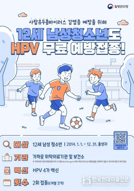 한국현대미술신문 배윤섭 기자 | 안성시는 사람유두종바이러스(HPV) 감염 질환을 예방하고 접종 형평성을 높이기 위해, 오는 5월 6일부터 HPV 국가예방접종 지원 대상을 12세(2014년생) 남성 청소년까지 확대한다고 밝혔다.