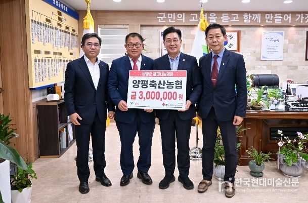 한국현대미술신문 배윤섭 기자 | 양평군은 지난 23일 양평축산농협이 취약계층을 위한 해피나눔성금 300만 원을 기탁했다고 밝혔다.