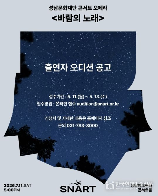 한국현대미술신문 배윤섭 기자 | 성남문화재단은 콘서트 오페라 ‘바람의 노래’ 무대를 빛낼 주역 성악가를 선발하는 오디션을 개최한다.