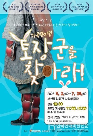 한국현대미술신문 정소영 기자 | (재)부산문화회관은 가족 뮤지컬 '토장군을 찾아라'를 오는 5월 2일부터 7월 25일까지 부산문화회관 사랑채극장에 올린다.