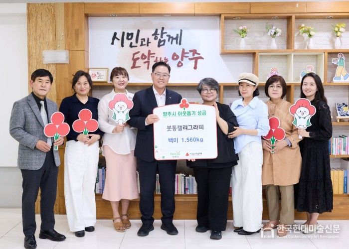 한국현대미술신문 배윤섭 기자 | 양주시는 지난 24일 시장실에서 붓통캘리그라피로부터 이웃돕기 성품으로 백미 1,560kg을 기탁받았다고 밝혔다.