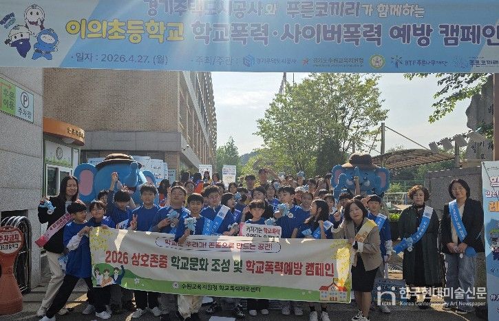한국현대미술신문 배윤섭 기자 | 경기도수원교육지원청은 4월 27일 오전, 이의초등학교에서 유관기관과 합동으로 ‘학교로 찾아가는 사이버폭력 예방 등굣길 캠페인’을 실시했다고 밝혔다.