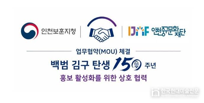 한국현대미술신문 박재남 기자 | 국가보훈부 인천보훈지청과 인천중구문화재단이 4월 27일 ‘백범 김구 탄생 150주년 홍보 활성화를 위한 업무협약(MOU)’을 체결했다.