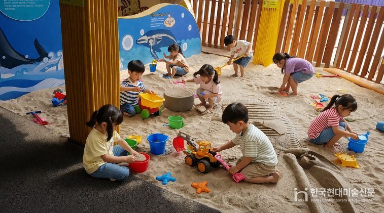 ‘모래 놀이터’에서는 모래 속에 숨겨진 혹등고래 화석을 발굴하는 활동을 통해 아이들의 상상력과 탐구심을 자극한다.