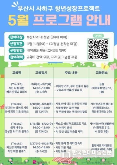 한국현대미술신문 정소영 기자 | 부산 사하구는 구직 활동에 지친 청년들의 일상 회복과 취업 역량 강화를 위해 '2026년 청년성장 프로젝트' 5월 프로그램 참여자를 선착순 모집한다.
