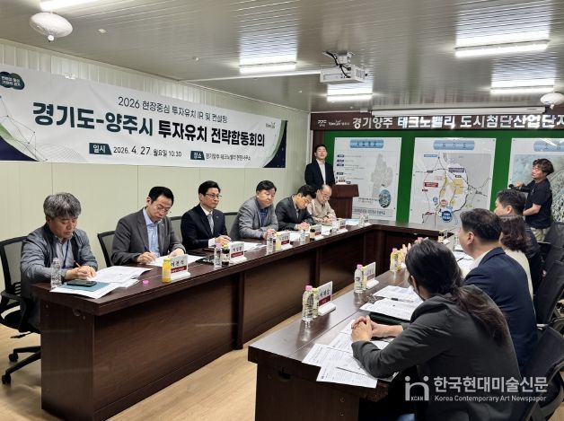 한국현대미술신문 배윤섭 기자 | 경기도는 27일 경기양주 테크노밸리 현장사무소에서 ‘경기도–양주시 투자유치 전략합동회의’를 열고, 양주시 주요 개발사업 현황을 공유하며 투자유치 협력 방안과 실행 전략을 논의했다.