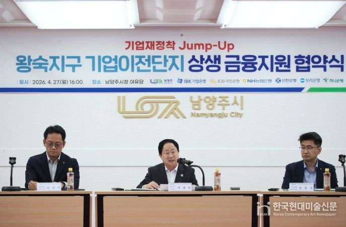 한국현대미술신문 배윤섭 기자 | 남양주시는 27일 왕숙신도시 개발로 이전이 필요한 기업의 안정적 재정착을 지원하기 위해 ‘왕숙신도시 기업재정착 점프업(Jump-up) 상생금융’ 업무협약을 체결했다고 밝혔다.