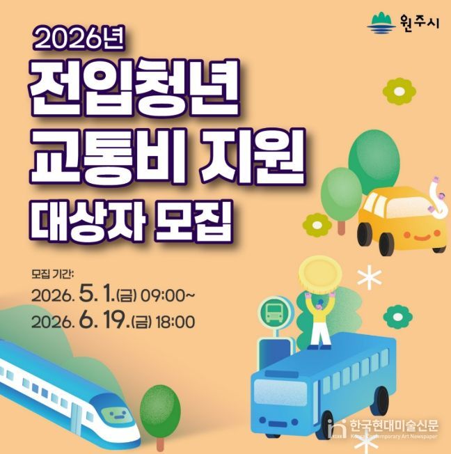 한국현대미술신문 원진 기자 | 원주시는 청년층의 전입과 안정적인 정착을 지원하기 위해 2023년 이후 원주시로 전입하고, 관외 직장으로 출퇴근하는 18∼39세 청년들을 대상으로 최대 120만 원의 교통비를 지원한다.