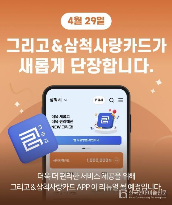 한국현대미술신문 원진 기자 | 삼척시는 4월 29일부터 시민 소통 기능 및 사용자 편의성을 한층 강화해 ‘삼척사랑카드’앱을 새롭게 선보인다.