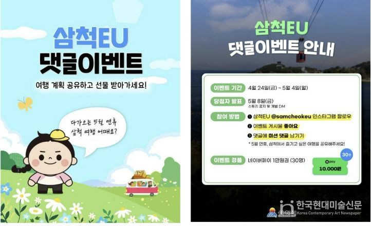 아울러 관광지 운영과 함께 온라인 홍보도 강화한다. 삼척시 공식 관광 SNS 채널 ‘삼척EU’를 통해 5월 가정의 달을 겨냥한 참여형 이벤트를 마련해 관광객과 시민의 관심을 유도할 계획이다.