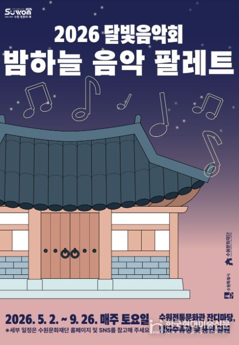 한국현대미술신문 배윤섭 기자 | 수원문화재단은 오는 5월부터 9월까지 국가유산과 자연, 음악이 어우러진 야간 공연 프로그램 '2026 달빛음악회 '밤하늘 음악 팔레트'’를 운영한다.