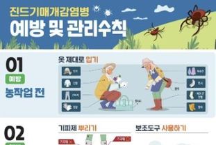 진드기 매개 감염병 예방 수칙은 작업복과 일상복 구분해 입기, 야외 활동 시 긴팔과 긴바지 착용하기, 진드기 기피제 사용하기, 야외 활동 후 입었던 옷 세탁하고 샤워하기, 야생동물과 접촉하지 않기 등이다.