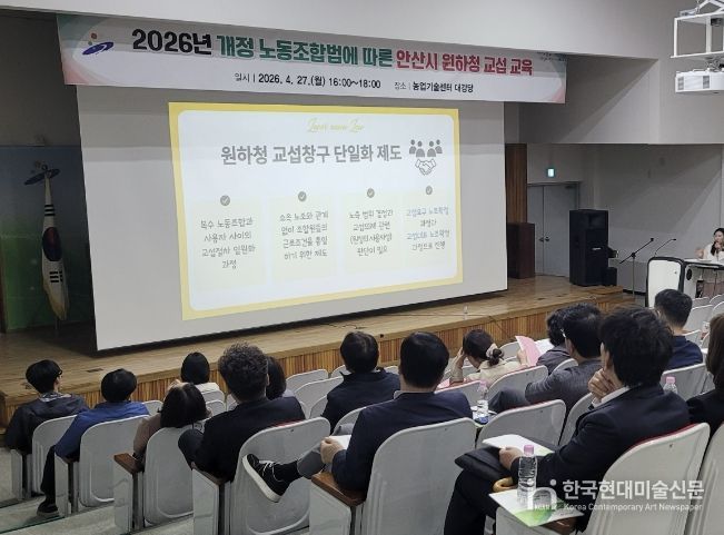 한국현대미술신문 배윤섭 기자 | 안산시는 지난 27일 농업기술센터 대강당에서 5급 이상 간부공무원을 대상으로 원·하청 교섭 교육을 진행했다고 28일 밝혔다.