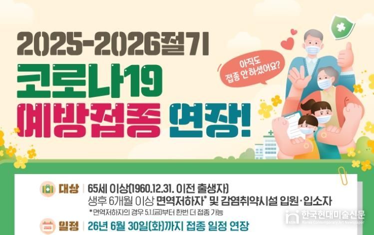 한국현대미술신문 기자 | 남원시보건소는 여름철 코로나19 재확산에 대응하기 위해 ‘2025-2026절기 코로나19 예방접종’ 기간을 당초 4월 30일에서 6월 30일까지 두 달간 연장한다고 밝혔다.