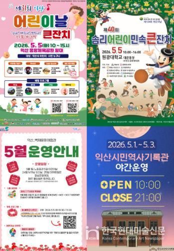 한국현대미술신문 기자 | 익산시가 5월 가정의 달과 어린이날 황금연휴를 맞아 도심형 축제와 이색 레저, 생태 힐링이 어우러진 풍성한 즐길 거리를 선보인다고 28일 밝혔다.