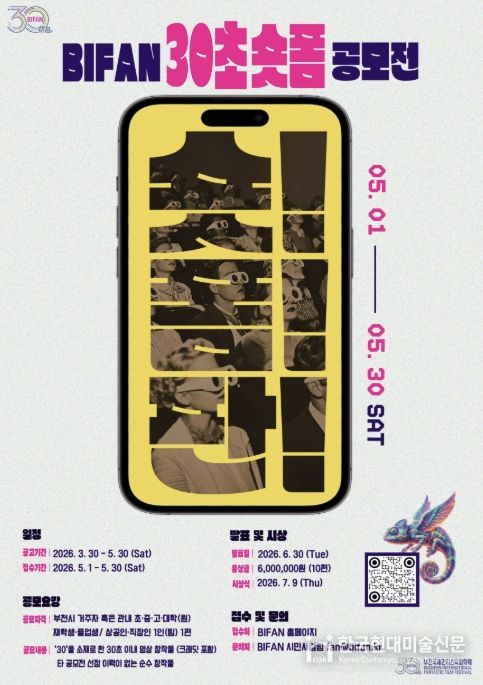 한국현대미술신문 배윤섭 기자 | 부천시는 부천국제판타스틱영화제(BIFAN)와 함께 ‘숏! 폼! 판! BIFAN 30초 숏폼 공모전’을 열고, 제30회를 맞은 영화제를 기념해 시민 참여형 프로그램을 운영한다.