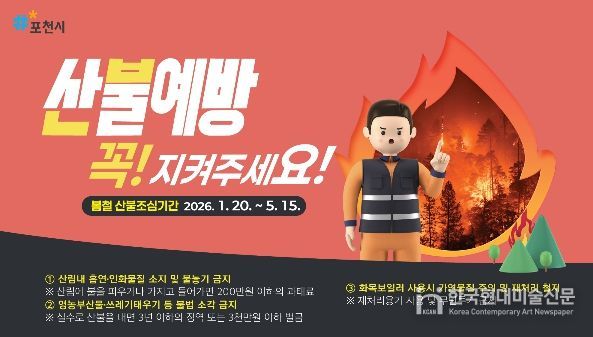 한국현대미술신문 배윤섭 기자 | 포천시는 봄철 건조한 날씨와 강풍으로 산불 발생 위험이 높아짐에 따라 산불조심기간이 종료되는 오는 5월 15일까지 경계를 늦추지 않고 산불예방 활동에 총력을 기울이고 있다.