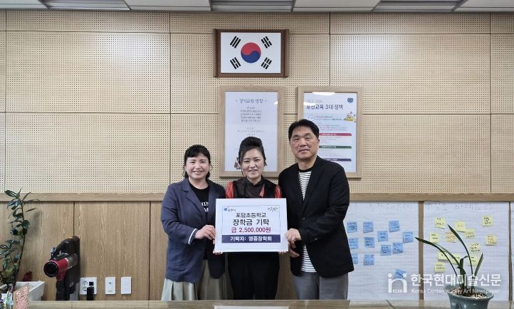 한국현대미술신문 배윤섭 기자 | 포천시 영중면 영중장학회는 지난 27일 지역 인재 양성을 위해 포담초등학교와 영중중학교를 방문해 장학금을 전달했다.