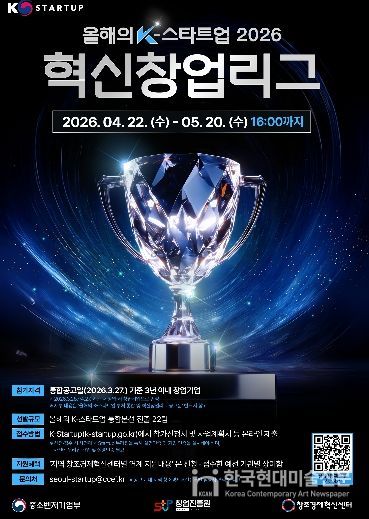 한국현대미술신문 신정은 기자 | (재)충남창조경제혁신센터는 오는 5월 20일 16시까지 우수한 기술력과 사업모델을 보유한 창업기업을 대상으로 ‘올해의 K-스타트업 2026’ 혁신창업리그(예선) 참가자를 모집한다고 밝혔다.