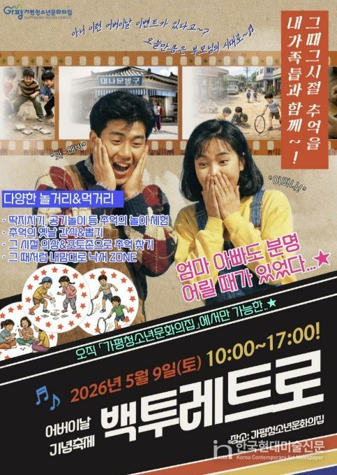 한국현대미술신문 배윤섭 기자 | 가평청소년문화의집이 어버이날을 앞두고 5월 9일 세대 간 공감과 소통을 위한 체험형 프로그램 ‘어버이날: 백투레트로’를 운영한다.