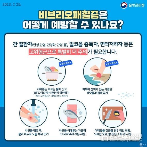 특히 만성 간 질환자, 당뇨병, 알코올의존자, 면역결핍 환자, 악성종양 등 비브리오패혈증 고위험군은 감염 시 치명률이 높으므로 더욱 철저한 주의가 필요하다.