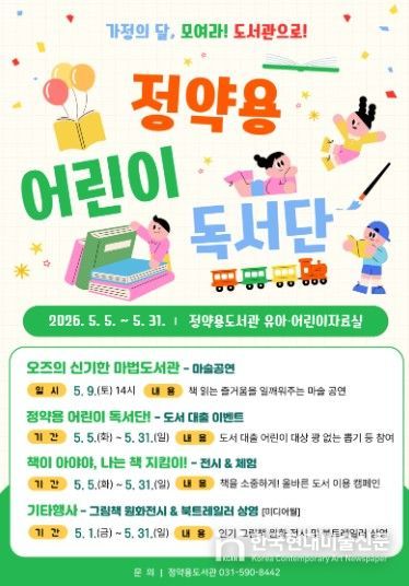 한국현대미술신문 배윤섭 기자 | 남양주시는 가정의 달을 맞아 5월 5일부터 31일까지 정약용도서관에서 ‘모여라! 정약용 어린이 독서단’ 행사를 운영한다고 28일 밝혔다.
