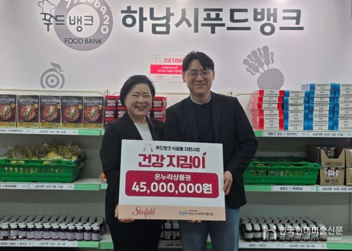 한국현대미술신문 배윤섭 기자 | 사회복지법인 하남시사회복지협의회는 4월 27일 스타필드하남(점장 유영인)으로부터 온누리상품권 4,500만원을 기탁받았다. 전달식은 이날 협의회에서 진행됐으며, 기탁된 상품권은 하남시푸드뱅크를 이용하는 취약계층 3,500세대에게 먹거리로 지원될 예정이다.