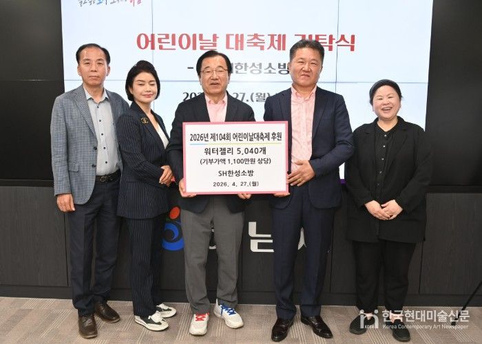 한국현대미술신문 배윤섭 기자 | 하남시종합사회복지관은 ㈜SH한성소방으로부터 어린이날을 맞아 지역 아동들을 위한 물품을 기탁받았다고 밝혔다. 이번 기탁은 2026년 4월 27일 하남시청 시장실에서 진행됐으며, ㈜SH한성소방 이승헌 대표와 장수진 이사, 하남시종합사회복지관 관계자 등이 참석했다.