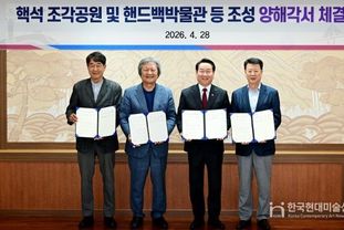 인천광역시는 4월 28일 인천시청 대접견실에서 조각가, ㈜시몬느, 블루코어PFV㈜와 ‘핵석 조각공원과 핸드백 박물관·핵석 전시관 조성’을 위한 양해각서를 체결했다.