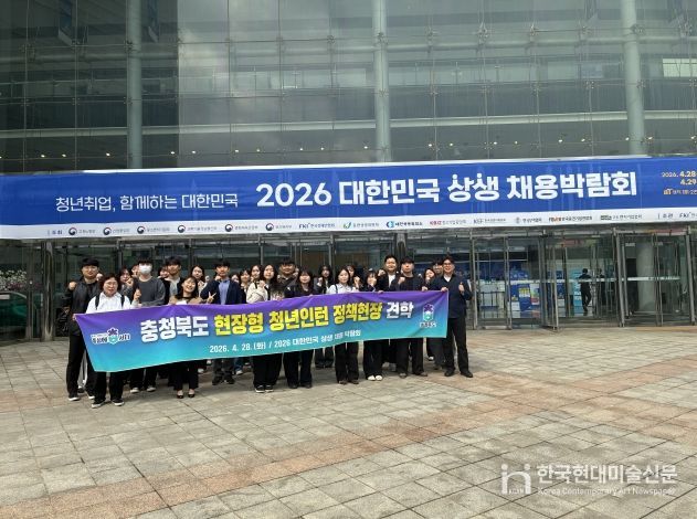 한국현대미술신문 신정은 기자 | 충북도는 28일 도내 현장형 청년인턴 34명을 대상으로 서울 aT센터에서 열린 ‘2026 대한민국 상생 채용박람회’에서 정책현장견학을 실시했다.