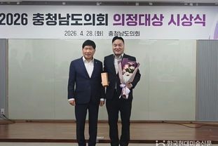 한국현대미술신문 신정은 기자 | 충남도의회 박정수 의원(천안9‧국민의힘)이 충남 산업 디지털 전환을 제도적으로 뒷받침한 입법 성과를 인정받아 28일 열린 ‘2026 충청남도의회 의정대상 시상식’에서 입법활동부문 의정대상을 수상했다.
