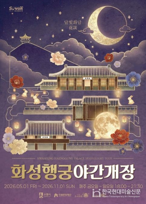 한국현대미술신문 배윤섭 기자 | 화성행궁 야간개장 ‘달빛화담, 花談’이 5월 1일 시작된다. 11월 1일까지 매주 금·토·일요일에는 저녁 9시 30분까지 화성행궁을 관람할 수 있다.
