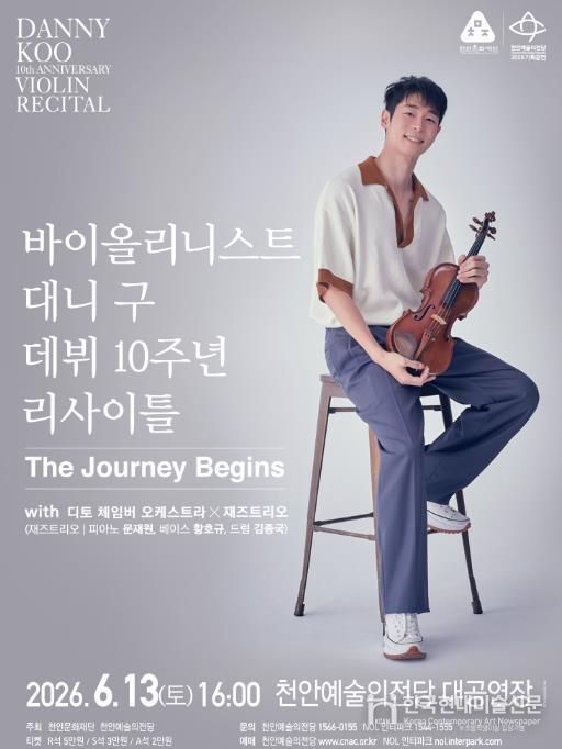 한국현대미술신문 신정은 기자 | 천안문화재단은 오는 6월 13일 천안예술의전당 대공연장에서 바이올리니스트 대니 구 데뷔 10주년 기념 리사이틀 ‘The Journey Begins’를 개최한다고 29일 밝혔다.