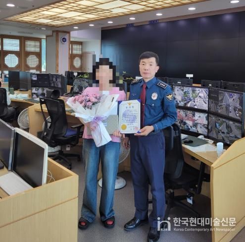 한국현대미술신문 신정은 기자 | 금산경찰서는 4.28. 오후 2시 신속한 112신고로 범죄를 사전에 예방하고 군민의 재산을 보호하는데 기여한 금산군 스마트도시 통합센터 CCTV관제요원에게 감사장을 수여했다고 밝혔다.