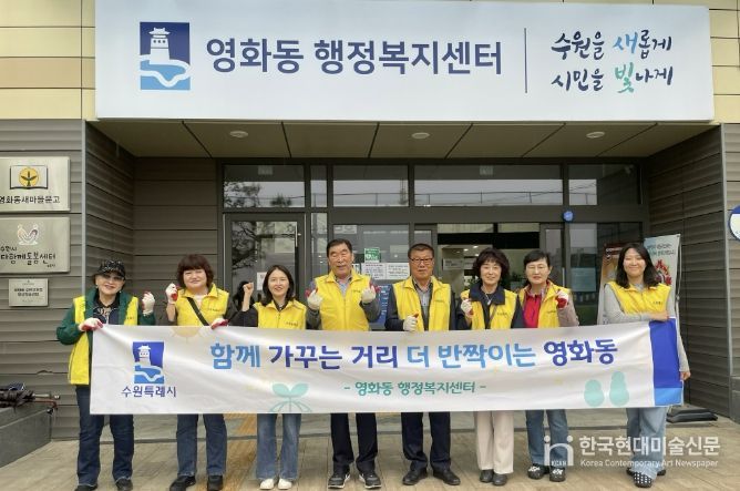 한국현대미술신문 배윤섭 기자 | 수원시 장안구 영화동은 지난 28일, 주민자치회와 함께 거북시장 사거리 일대에서 봄철 환경정비 활동을 실시하며 쾌적한 마을환경 조성에 나섰다.