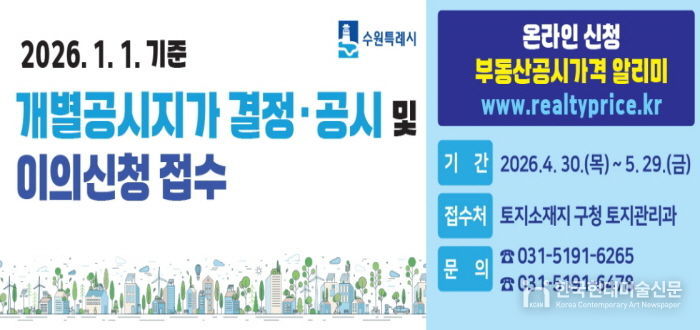 한국현대미술신문 배윤섭 기자 | 수원시 권선구는 4월 30일 결정·공시되는 개별공시지가에 대해 4월 30일부터 5월 29일까지 이의신청을 접수한다고 밝혔다.