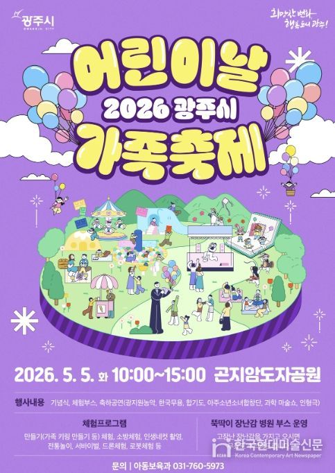 한국현대미술신문 배윤섭 기자 | 광주시는 제104회 어린이날을 맞아 오는 5월 5일 오전 10시 곤지암도자공원에서 ‘어린이날 가족축제’를 개최한다.