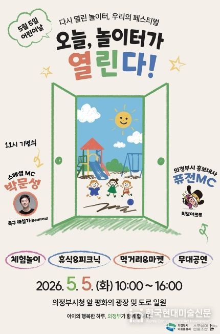 한국현대미술신문 배윤섭 기자 | 의정부시는 제104회 어린이날을 맞아 5월 5일 오전 10시부터 오후 4시까지 의정부시청 앞 평화의 광장 및 도로 일원에서 ‘2026년 의정부시 어린이날 기념행사’를 개최한다.